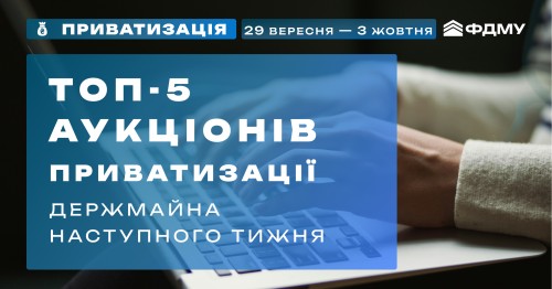 Топ-5 аукціонів приватизації держмайна наступного тижня