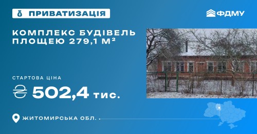 Фонд держмайна виставив на приватизацію комплекс будівель загальною площею 279,1 м² на Житомирщині. Аукціон відбудеться в електронній торговій системі «Прозорро.Продажі».