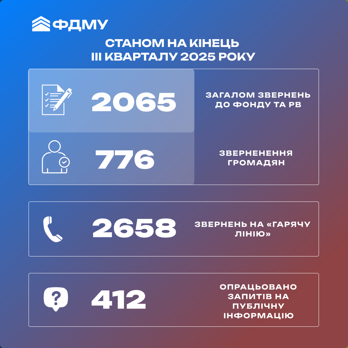 Звернення громадян до ФДМУ: підсумки за 9 місяців 2025 року