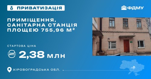 Фонд державного майна України виставив на приватизацію приміщення, санітарну станцію загальною площею 755,96 м² у Кіровоградській області. Аукціон відбудеться у торговій системі «Прозорро.Продажі».