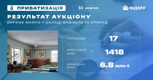 6,8 млн грн (+1,36 млн грн ПДВ) — результат онлайн-аукціону з приватизації окремого майна у складі будівель та споруд на Івано-Франківщині