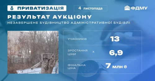 Понад 7 млн грн (+1,4 млн грн ПДВ) — результат онлайн-аукціону з приватизації незавершеного будівництва адміністративної будівлі в місті Чернівці