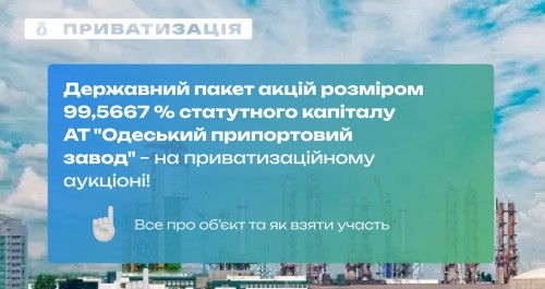 Приватизація державного пакета акцій розміром 99,5667 % статутного капіталу АТ "Одеський припортовий завод"