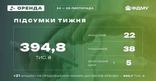 Понад 394 тис. гривень – результат минулого тижня на онлайн-торгах з оренди державного майна