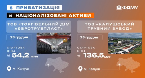 Довідково. Раніше підприємства ТОВ «Торгівельний дім «Євротрубпласт» та ТОВ «Калушський трубний завод» належали російському олігарху Мирону Горіловському та його партнерам. Згідно з рішенням ВАКС, відбулося стягнення активів у дохід держави, які нині перебувають в управлінні Фонду держмайна.