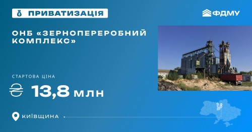 Команда Фонду держмайна оголосила онлайн-аукціон з приватизації об’єкта незавершеного будівництва “Зернопереробний комплекс” загальною площею 688,5 м². Торги відбудуться у системі «Прозорро.Продажі».