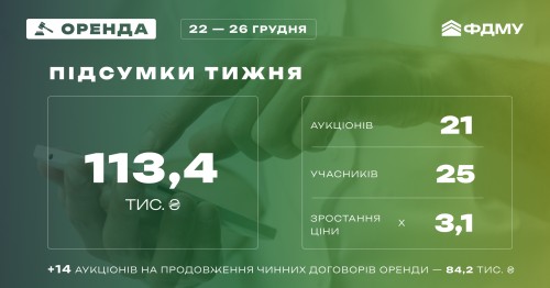 Понад 113 тис. гривень – результат минулого тижня на онлайн-торгах з оренди державного майна