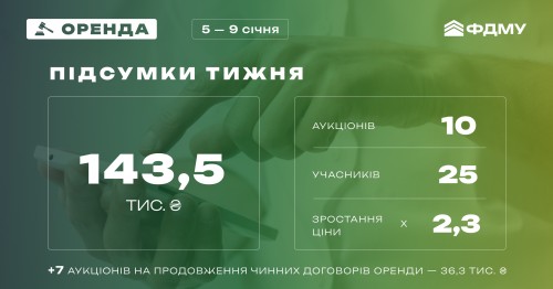 Понад 143 тис. гривень – результат минулого тижня на онлайн-торгах з оренди державного майна