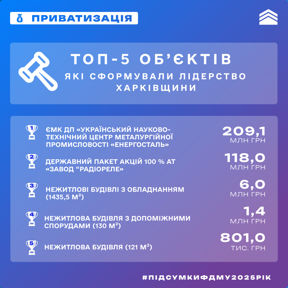 ТОП-5 регіональних відділень ФДМУ за виконанням плану приватизації у 2025 році
