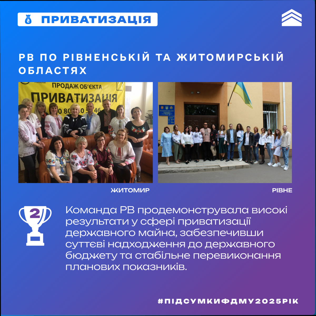 - 2 місце серед регіональних відділень ФДМУ