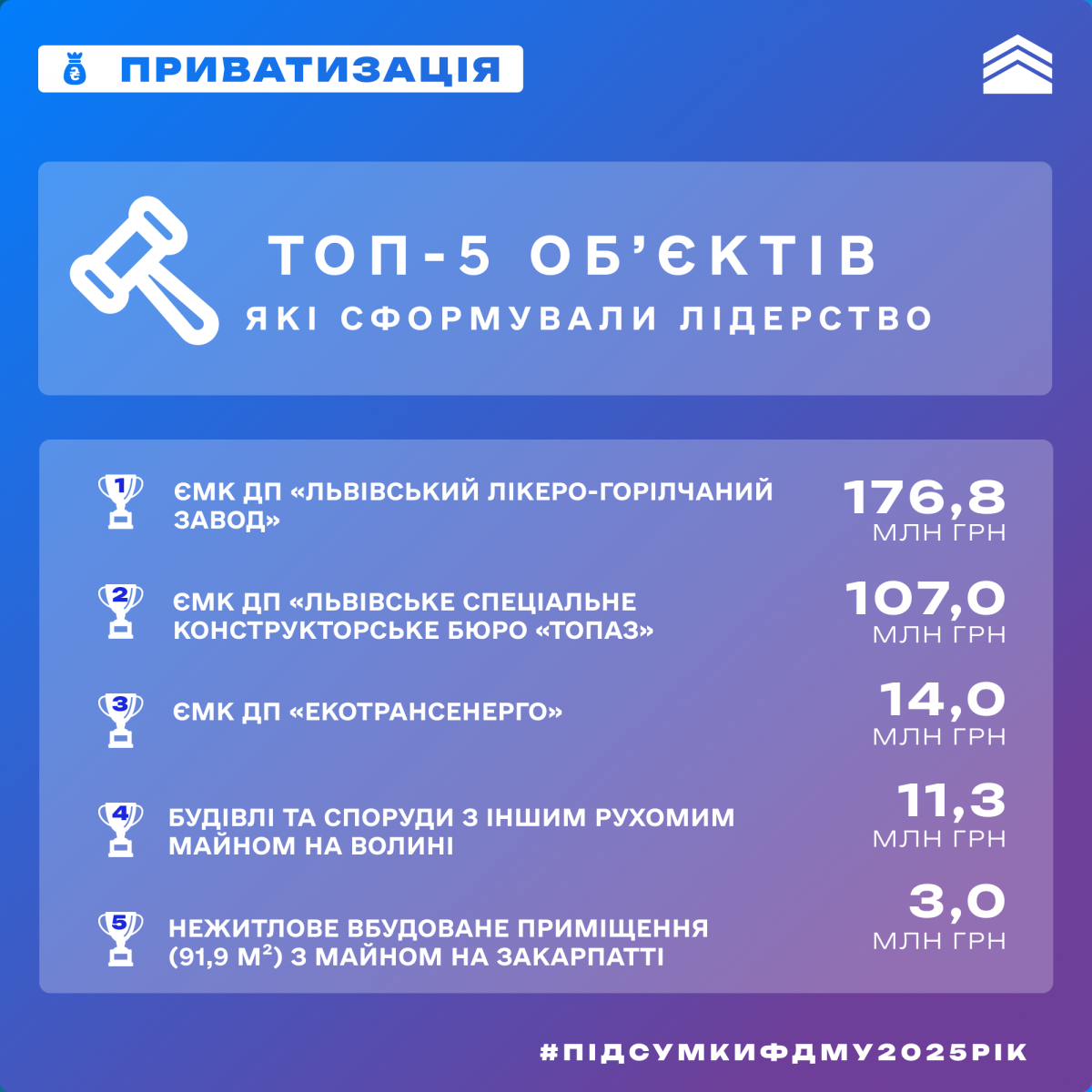 Ключові результати приватизації у 2025 році: