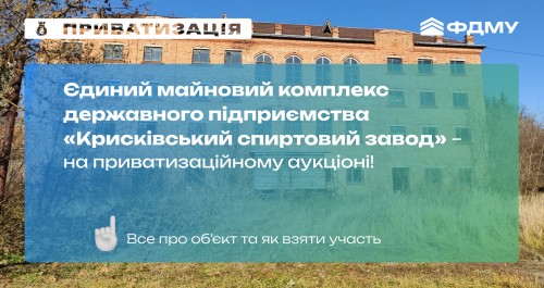 Приватизація — це механізм залучення інвестицій та перетворення державних активів на працюючі економічні драйвери регіонів. Запрошуємо бізнес до участі в аукціоні