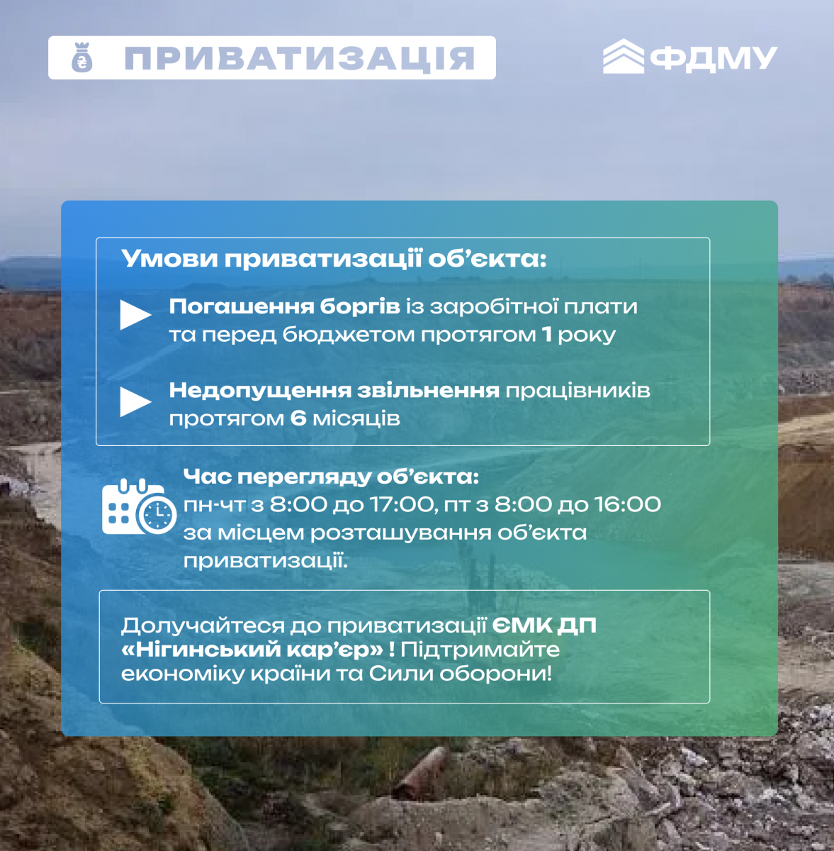 Інвестиційна можливість у сфері видобутку: «Нігинський кар’єр» – на приватизаційному аукціоні!