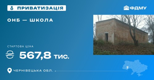 Фонд держмайна оголосив проведення онлайн-аукціону з приватизації об’єкта незавершеного будівництва — школи в селі Слобода Чернівецької області. Аукціон відбудеться в електронній торговій системі «Прозорро.Продажі».