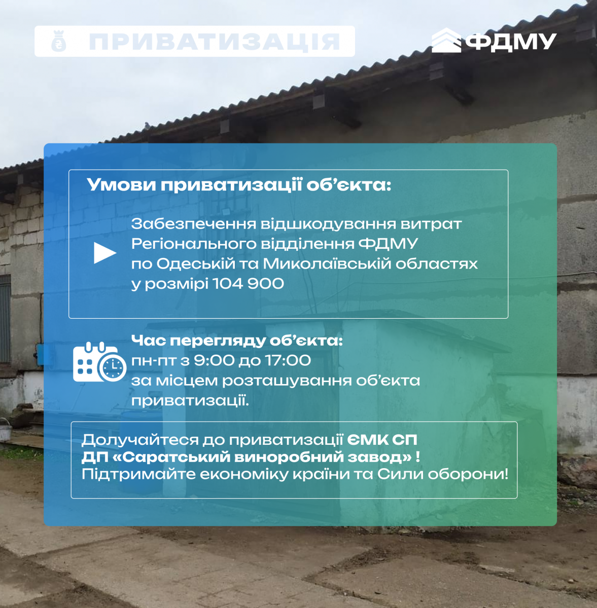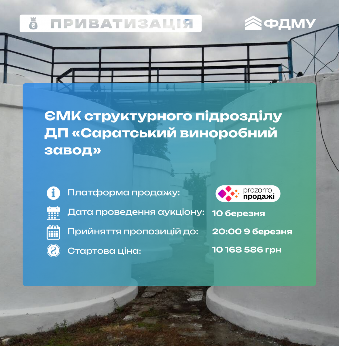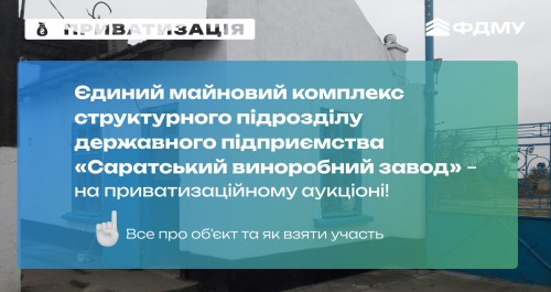 Фонд держмайна виставив на приватизацію ЄМК ДП «Саратський виноробний завод». Торги відбудуться в електронній системі «Прозорро.Продажі».