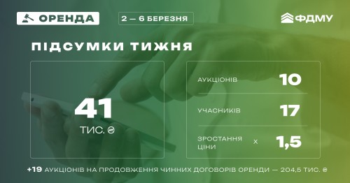 Понад 41 тис. гривень – результат минулого тижня на онлайн-торгах з оренди державного майна