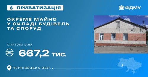 Фонд держмайна виставив на приватизацію окреме майно у складі будівель та споруд загальною площею 315,2 м² у Чернівецькій області. Аукціон відбудеться в електронній торговій системі «Прозорро.Продажі».
