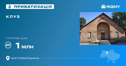 Фонд держмайна виставив на приватизацію клуб на Житомирщині. Аукціон заплановано в електронній системі «Прозорро.Продажі».