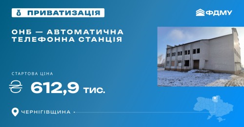 Фонд держмайна оголосив проведення онлайн-аукціону з приватизації об’єкта незавершеного будівництва — автоматичної телефонної станції на Чернігівщині. Торги пройдуть в електронній системі “Прозорро.Продажі”.