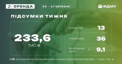 Понад 233 тис. гривень – результат минулого тижня на онлайн-торгах з оренди державного майна