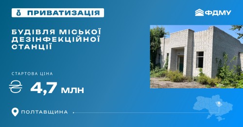 Фонд держмайна виставив на приватизацію будівлю Кременчуцької міської дезінфекційної станції загальною площею 1 273 м² на Полтавщині. Аукціон відбудеться в електронній торговій системі «Прозорро.Продажі».