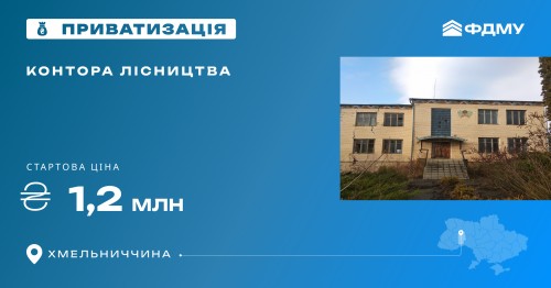 Фонд держмайна оголосив проведення онлайн-аукціону з приватизації контори лісництва загальною площею 364,7 м² на Хмельниччині. Торги пройдуть в електронній системі “Прозорро.Продажі”.