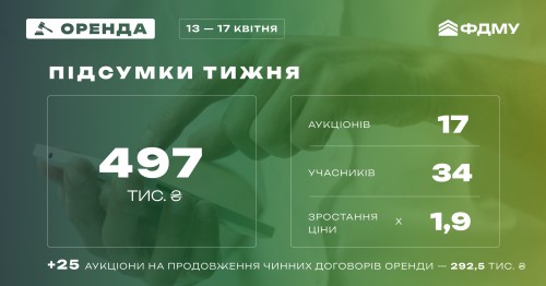 З 20 по 24 квітня Фонд державного майна України планує провести 47 онлайн-аукціонів з приватизації державного майна