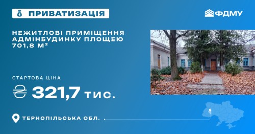 АНОНС: нежитлові приміщення адмінбудинку на Тернопільщині – на приватизаційному аукціоні!