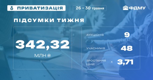 Підсумки минулого тижня: 9 успішних приватизаційних аукціонів на суму – 342,32 млн гривень