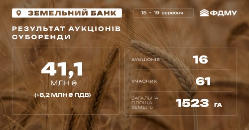 41,1 млн гривень (+ 8,2 млн грн ПДВ) – результати торгів «Земельного банку» цього тижня
