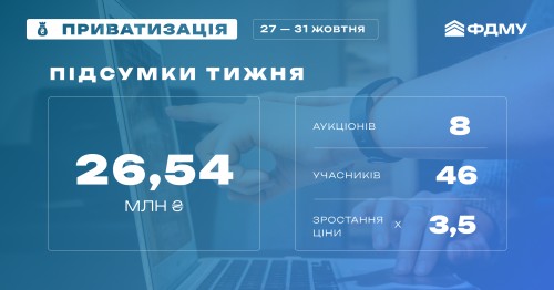 Підсумки приватизації минулого тижня: 8 аукціонів на суму – 26,54 млн гривень