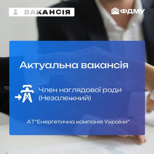 Запрошуємо кваліфікованих та вмотивованих кандидатів долучитися до формування ефективної та прозорої системи корпоративного управління в енергетичному секторі України.