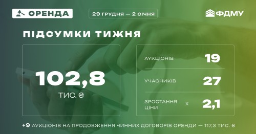 Понад 102 тис. гривень – результат минулого тижня на онлайн-торгах з оренди державного майна