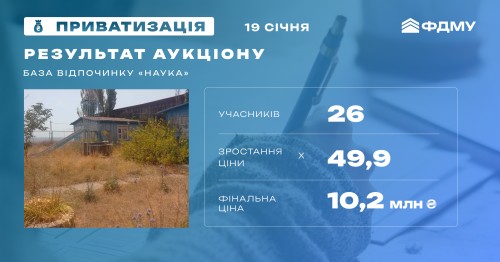 10,2 млн грн (+ 2,04 млн грн ПДВ) – результат аукціону з приватизації бази відпочинку на Одещині