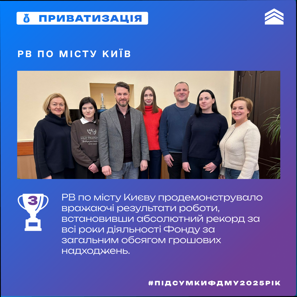 - 3 місце серед регіональних відділень ФДМУ за виконанням плану