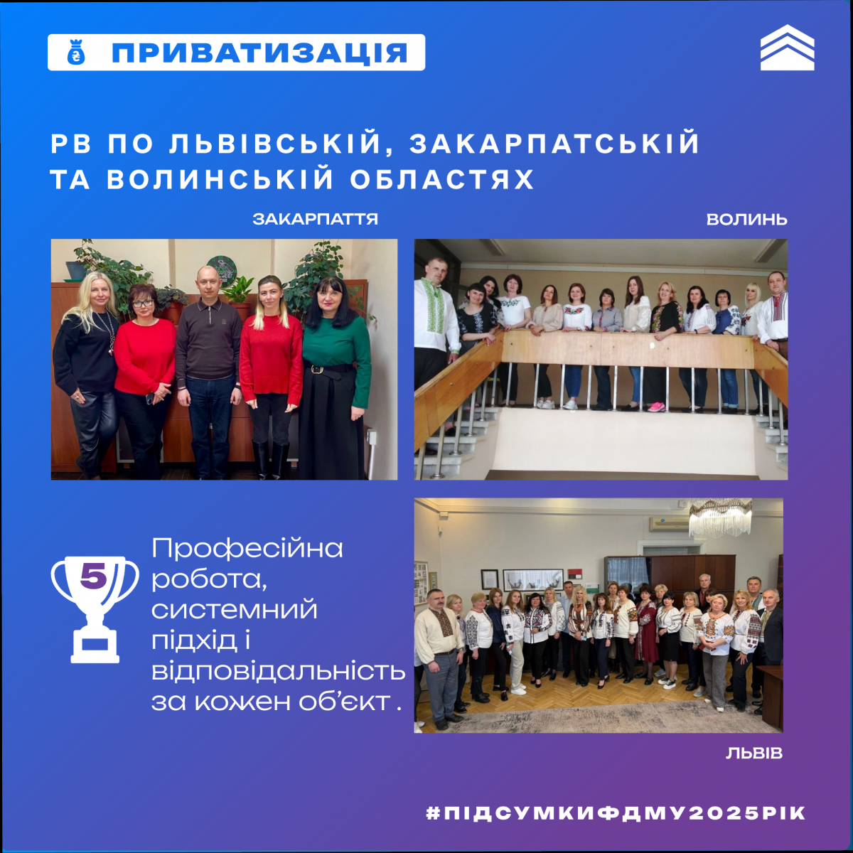 Продовжуємо серію дописів про регіональні відділення Фонду держмайна, які за підсумками 2025 року увійшли до ТОП-5 за рівнем виконання річного плану з приватизації.
