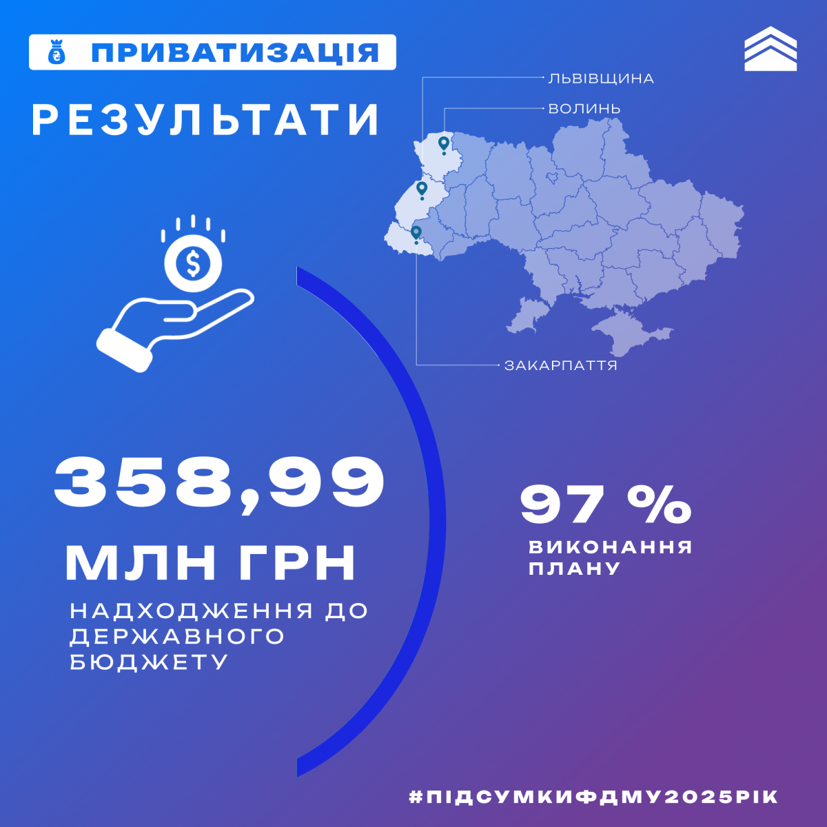 Саме ці об’єкти сформували основну частину надходжень від приватизації, забезпечили максимальний фінансовий ефект і створили передумови для подальшого розвитку активів.