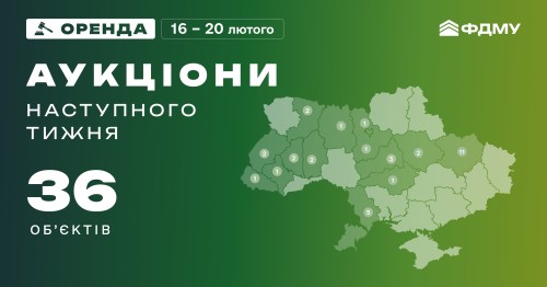З 16 по 20 лютого Фонд держмайна планує провести 36 онлайн-аукціонів з оренди державного майна.