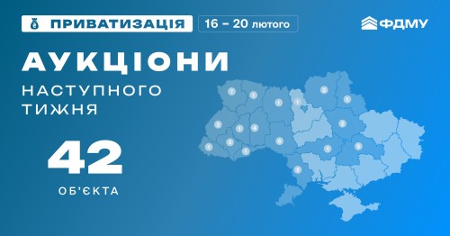 З 16 по 20 лютого Фонд державного майна України планує провести 42 онлайн-аукціони з приватизації державного майна.