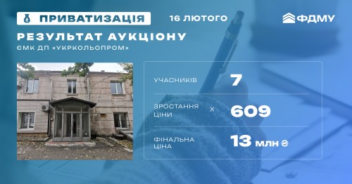 13 млн грн (+2,6 млн грн ПДВ) — результат онлайн-аукціону з приватизації ЄМК ДП «Укркольорпром»