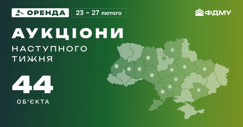 З 23 по 27 лютого Фонд держмайна планує провести 44 онлайн-аукціони з оренди державного майна.
