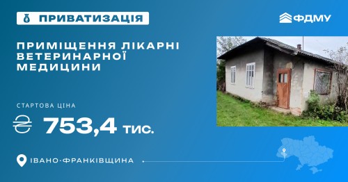 Фонд держмайна виставив на приватизацію приміщення лікарні ветеринарної медицини загальною площею 115,8 м² в Івано-Франківській області. Аукціон відбудеться в електронній торговій системі «Прозорро.Продажі».
