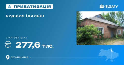 Фонд держмайна виставив на приватизацію будівлю їдальні загальною площею 422,4 м² на Сумщині. Аукціон відбудеться в електронній торговій системі «Прозорро.Продажі».