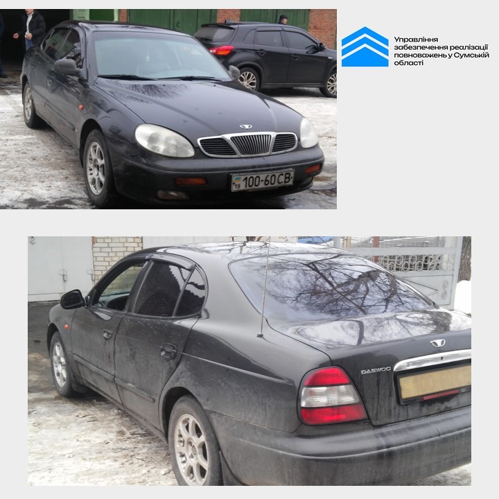 – автомобіля DAEWOO Leganza, рік випуску 1998, 10060 СВ, за адресою: м.Суми, вул.Іллінська, буд. 97, що перебуває на балансі Сумської районної державної адміністрації.