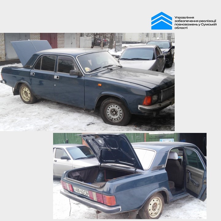 - автомобіля ГАЗ 3110, рік випуску 2000, 44450 CВ, за адресою: м. Суми, вул. Іллінська, 97. Балансоутримувач - Сумська районна державна адміністрація.